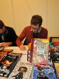 La última parada fue Getxo. Un salón pequeño y coqueto. Aquí firmé ejemplares en el stand de Dolmen. Uno, por cierto, era un regalo para un joven actor aspirante. Ahí va una foto, cortesía de Rubén J. Sedano.
