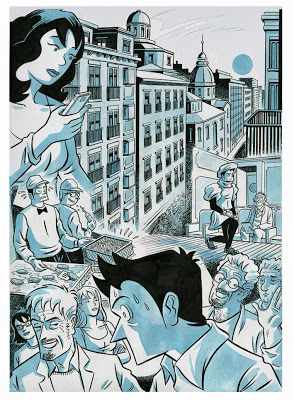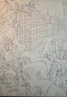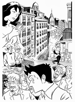 En esta imagen muestro dos viñetas de la última historia del integral de Actor Aspirante que se publicará este otoño. La historia se titula “La ciudad de los sueños.” Pablo Diaz-Strasser, el protagonista, trata de entender ciudad de Los Ángeles. Si alguien quiere encontrar paralelismos...![]()