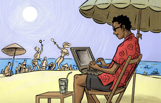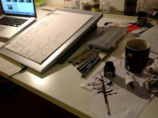 Ahora estoy dando los últimos retoques al volumen integral de 'Actor Aspirante', mientras el diseñador está montando las páginas. Hoy, por ejemplo, he estado escribiendo un texto para el prólogo -o para los extras que se incluirán-. También estamos barajando las distintas ideas para la portada. Además, he estado trabajando con un amigo escritor que conocí en St. Louis en un proyecto para una comedia de ciencia-ficción en formato álbum o novela gráfica. Pondré también alguna muestra en próximas entradas y, ojalá, en un futuro cercano pueda anunciar que algún editor ha aceptado el proyecto. Para ello, tendré que mandarlo antes, claro. Y para el final, dejo lo que creo más interesante para los propósitos de este blog. En los próximos meses voy a hacerme un portafolio de ilustración y explorar ese mercado. Mi intención es ir documentando todos los pasos de mi incursión en el mundo de la ilustración en este blog. Quien lo siga podrá seguir todo mi proceso, desde la elección de las primeras imágenes para mi portafolio, la creación de otras, el diseño de mi web de ilustraciones, las estrategias que iré siguiendo para promocionarlas, hasta cuestiones más generales como el hacer frente a la procrastinación… Si alguno de vosotros lectores, sois ilustradores, agradeceré que pongáis consejos o observaciones en la sección de comentarios. Asimismo, espero que lo que vaya aprendiendo por el camino os sirva. Hasta una próxima entrada.