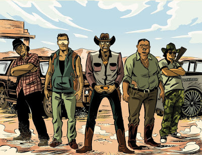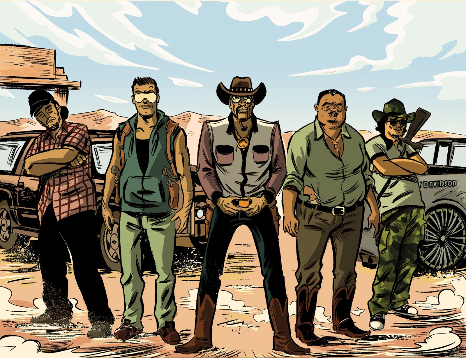 Un western en el que destacan los dibujos de Max Vento y sus personajes: “Desde el principio quería darle a cada narco que aparece su propia personalidad. Que cada uno vistiese de una forma y que se pudieran distinguir entre sí. No queríamos villanos de opereta. Los fondos también eran muy importantes para que la experiencia del lector fuera más envolvente, que viera que transcurre en un sitio concreto. Aunque me haya tomado algunas licencias”. Una historia que ha hecho que cambie su dibujo: “El cambio es fruto de mi evolución como dibujante y también de lo que me inspiró el guion de Ricardo. Mis fondos siguen siendo realistas en comparación a mis personajes más caricaturescos. He añadido muchos más detalles y he ensuciado la línea. Y luego está el color que da mucho juego también”. “Creo que un estilo así era lo que pedía la historia –añade Max-. En cuanto a las secuencias de acción me salieron de forma bastante natural. Yo crecí leyendo Akira (Katsuhiro Otomo, 1982) y, en cierta forma, estaba esperando un proyecto en el que poder desarrollar escenas así”.Podéis leerlo entero aquí