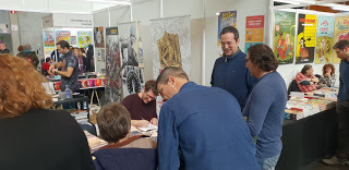 Ayer pasé un día estupendo en el Salón del Cómic de Zaragoza, gracias a la hospitalidad de Enrique y Natalia de Taj Mahal Cómics. Ricardo Vilbor y yo firmamos un montón de libros. Me hizo especial ilusión firmar un par de 'Actor Aspirante' (que sigue siendo mi bebé). Y, como siempre, fue genial ver a los amigos del mundillo con los que únicamente coincido en estos saraos.
