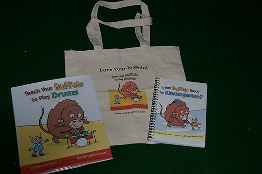 Okay, here's the loot: one buffalo tote bag, one buffalo notebook, and one signed buffalo book (of your choosing). Lots of buffalo. The contest will end on the last day of August, when a winner will be chosen at random.