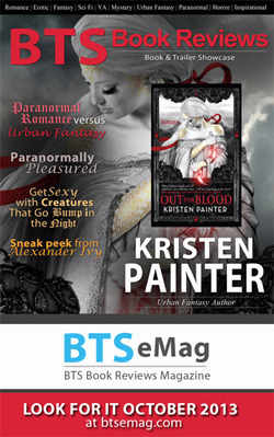 Check out the October issue of BTS Book Reviews magazine – it’s FREE! The talented Kristine Painter is this month’s cover author. Highlighted is her House of Camarre’ series with her insight into the series and a sneak peek into Last Blood. Also included are 11 other authors such as Alexander Ivy, Diane Duvall and Victoria Dannan.