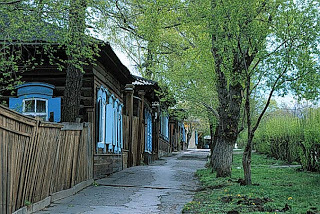 Street in IrkutskExcept in Siberia. There’s a nostalgic simplicity here. I think it’s part of the reason that I’m drawn to this strange and wonderful land. In Khabarovsk and Ulan Ude and Irkutsk there are still trolleys running on rails set in the streets. There are electric buses with poles reaching up to draw power from overhead wires. There are weedy lots and sidewalks with grass poking up through cracks. Old buildings in these cities are reminiscent of those rundown textile mills of Pawtucket. (Like the designers of those American mills, Soviet architects had no sense of aesthetics.)