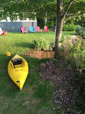 And for those three weeks, I found I was able to live each day for itself, not worrying about what went before or what lay ahead. That is a gift that is rarely given, and I tried to appreciate every moment of it. Being unplugged from email, television, newspapers, and the Internet certainly helped banish the usual stresses of modern everyday life. And so I was able to steep in the refreshingly cool silence, and bask in the bright sunshine like the little brick-colored lizard that lived beneath the outdoor shower. My favorite thing was to get up at dawn to kayak when the lake was like glass, with loons trailing along behind me and a bald eagle soaring overhead.