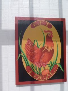 So I used my so-called down time yesterday to drive out to the produce stand at The Rock—though it's the fanciest produce stand of all time. It's set on a working cattle ranch amidst shade trees and lovingly-tended flower and herb beds. I went to get some blueberries, blackberries, and raspberries, grown right there on pick-your-own bushes. Later in the summer they will have kiwis and pomegranates as well. Yesterday they also had farm-fresh eggs and all kinds of vegetables. Normally when I go I treat myself to some strawberry ice cream, but even for this ice cream-aholic, it was a wee bit early in the morning for that, so I passed.