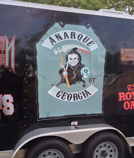 The festival is actually part of the competitive barbecue-cooking circuit; who knew there was such a thing? Each team also tries to outdo each other with clever names. Look at the juxtaposition of these two teams, barely a hundred yards from one another.