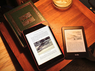 Besides, to me, a physical book is a treasure, something to cherish. That's why I own four different hardcover versions of The Hobbit, for example; I do that with many books. I'm never going to feel that way about a digital book file on an e-reader. So I'll continue to download books to my Mini and Paperwhite to read, but when I find a title that I love, I'm still going to buy a hardcover version, the more elegantly-bound the better.