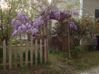 There are some compensations, however. Look at this photo that I took on my iPhone of the wisteria in my neighbor's yard: lovely!