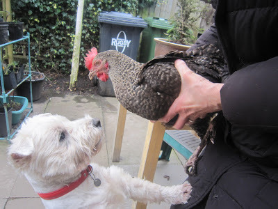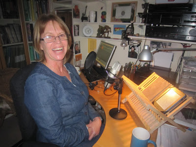 Just as well this is radio and not TV Well, as things turned out, I didn't need to worry. Once I'd hit my stride, things flowed very smoothly and the whole experience was a blast. I've noticed before that most authors seem to enjoy reading their work out loud; we have to be a little bit in love with what we write, otherwise we couldn't keep pounding away at it day after day. It was a huge treat for me to spend two solid days in Eugenie's company - and although it can't have been quite such fun for Simon, he bore the ordeal with great patience. Lots of coffee and biscuit breaks, visits from the resident studio dog, Harry, eggs from the resident studio hens for breakfast - what more could a wannabe thespian want? I won't ever pass for a native American or Irishwoman but actually, this is Eugenie telling her story, and I don't think she'd be very good at accents either, so that's all right.