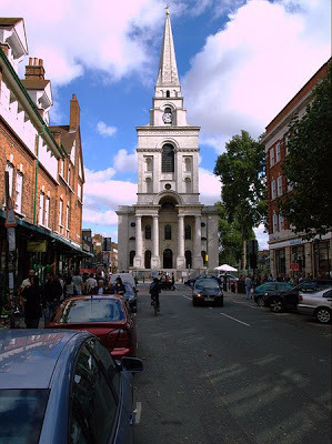 Christ Church, SpitalfieldsAlthough I've lived in London for years, there are still parts of the city I don't know at all. Spitalfields is one of them. Over the past few years, this once-shabby corner of the East End has picked itself up, dusted itself down and emerged as a vibrantly multi-cultural area, crammed with cutting-edge shops and offices, artists' studios, street markets (including Petticoat Lane and the amazing Sunday-morning Columbia Road flower market) and a thousand good places to eat, from uber-cool steakhouses to the Bangladeshi restaurants of Brick Lane.