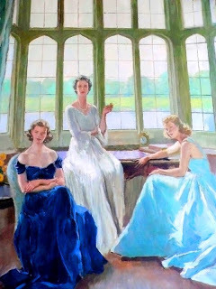 Leeds CastleAnd last but not least, in Kent, to the south-east of England, lies the fairy-tale Leeds Castle, the oldest of these houses, which was originally a Saxon manor dating from the ninth century. Surrounded by a moat, the castle has the most gorgeous gardens and is particularly lovely to visit in the spring, when the carpets of daffodils are blooming. Heavy death duties meant the place had to be sold in the 1920s by the Wykeham Martin family, who had owned it for a century (relative newcomers!). Randolph Hearst, the American newspaper magnate, was looking to buy an English castle (as you do), but so much work was needed, he was discouraged, and it was eventually acquired by the Hon. Mrs Wilson-Filmer, later Lady Baillie. She transformed the castle into one of the great houses of England and entertained politicians, various royals and film stars within its secluded walls. During the Second World War, the castle became a military hospital (as Swallowcliffe Hall became in the First), and later Lady Baillie bequeathed it to the nation. I love this portrait of her with her daughters, painted in1947; she is smoking so insouciantly, staring straight out of the picture, while her daughters (two elegant English roses) look shyly into the distance.
