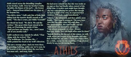I was fiddling around with some story content for Raiders of the Serpent Sea and I’ll eventually post this to the Kickstarter site as well, but thought I’d share it here first. Athils and her brother live in the Whar clan, to the north of the Serpent Sea. They represent an emerging clan, starting to rise and they have the honor of being the first clan that the wolves from the Lost Lands have chosen to join. Most Wolf Riders (a ranger class archetype) come from the Whar Clan.