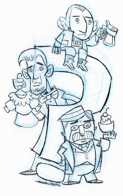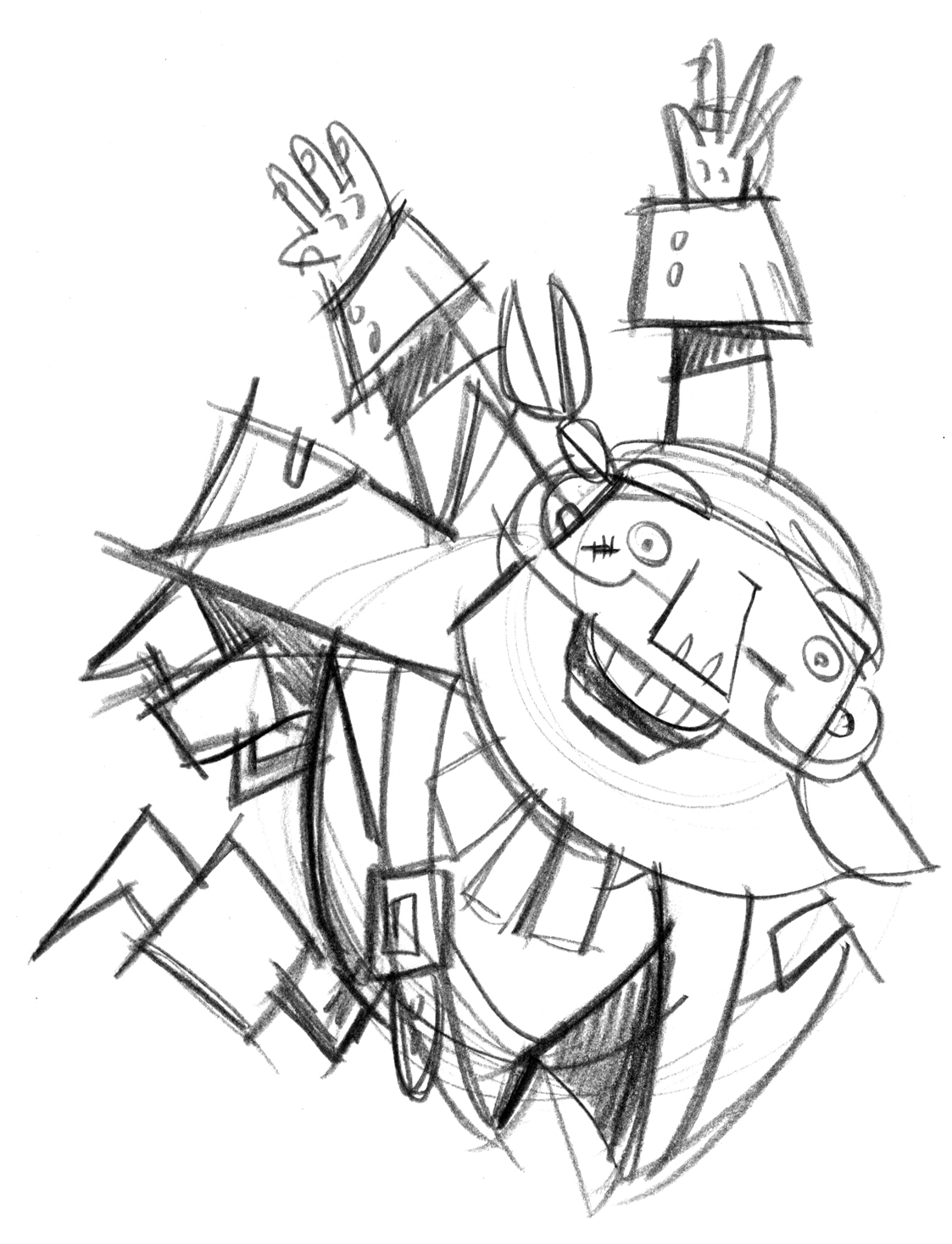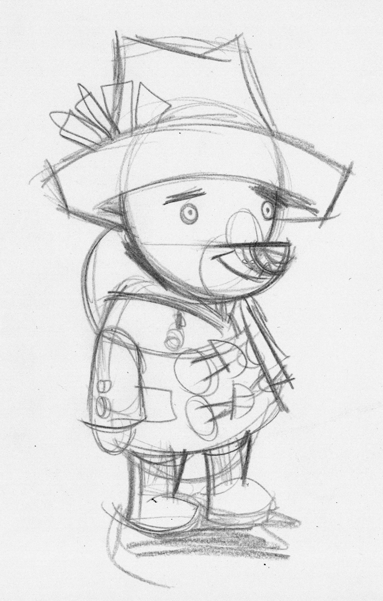 My style is a little more angular than I felt appropriate, so I rounded out the corners a bit to carry his personality.