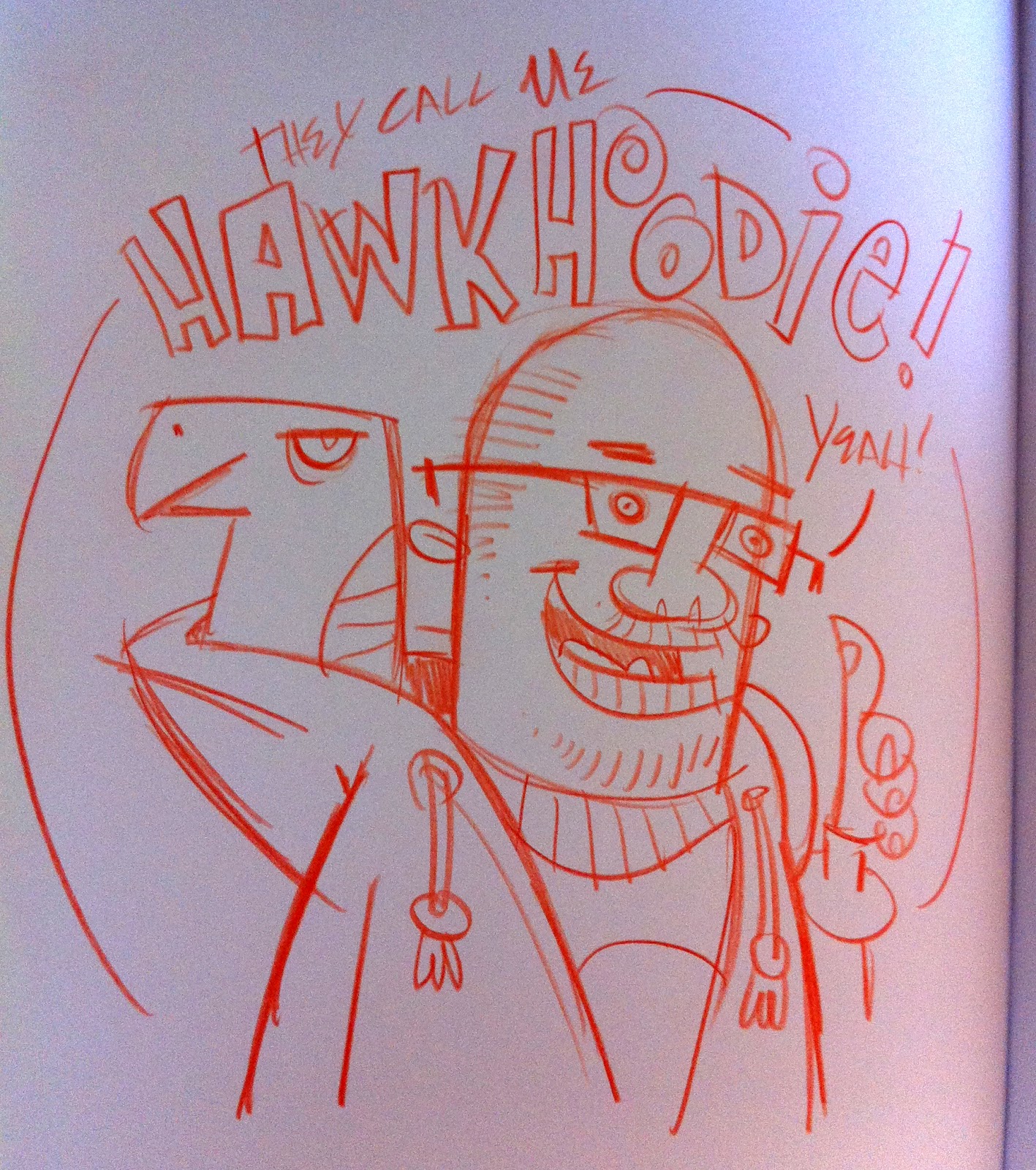 The illustration that arose from my statement "I have a hawk in my hood."*