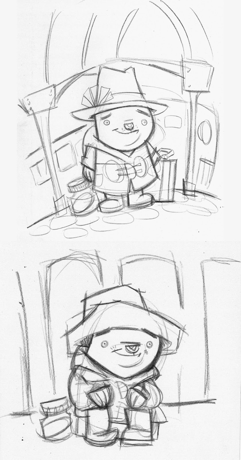 April was my last post--there were things happening in May I knew would keep me from posting--but in the time passed I've been sketching Paddington. Roughing him. Playing with him. What would my Paddington look like? (As always, click the images to see them bigger.)