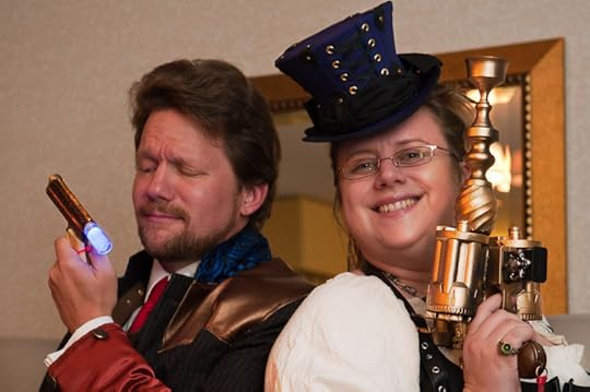 So, gentle reader, my own bit of steampunkery for you on the day of our book's release is to challenge yourself and adopt for your next project a true discipline of the Victorian age: Go beyond. In our Victorian-based/inspired fiction, we write of magnificent gentlemen in flying machines, explorers crossing and conquering new frontiers, and adventures of discovery. This is all part of the steampunk way. Therefore, go beyond. Find out if your latest creation — a short story, a film, or work of art — crosses into another interest such as romance, history, sculpture, or science. You may find yourself an ambassador of the genre, answering questions and bringing in new fans to what we do with steam, cog, and the imagination.