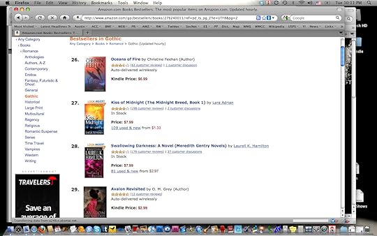 Over the past few weeks, Avalon Revisited has been hovering around the #30 mark on Amazon's Best-Seller list for Gothic Romance. I couldn't be more thrilled! The lists are updated every hour, so I have seen it as high as #26 & low as #42, but it's all pretty close!