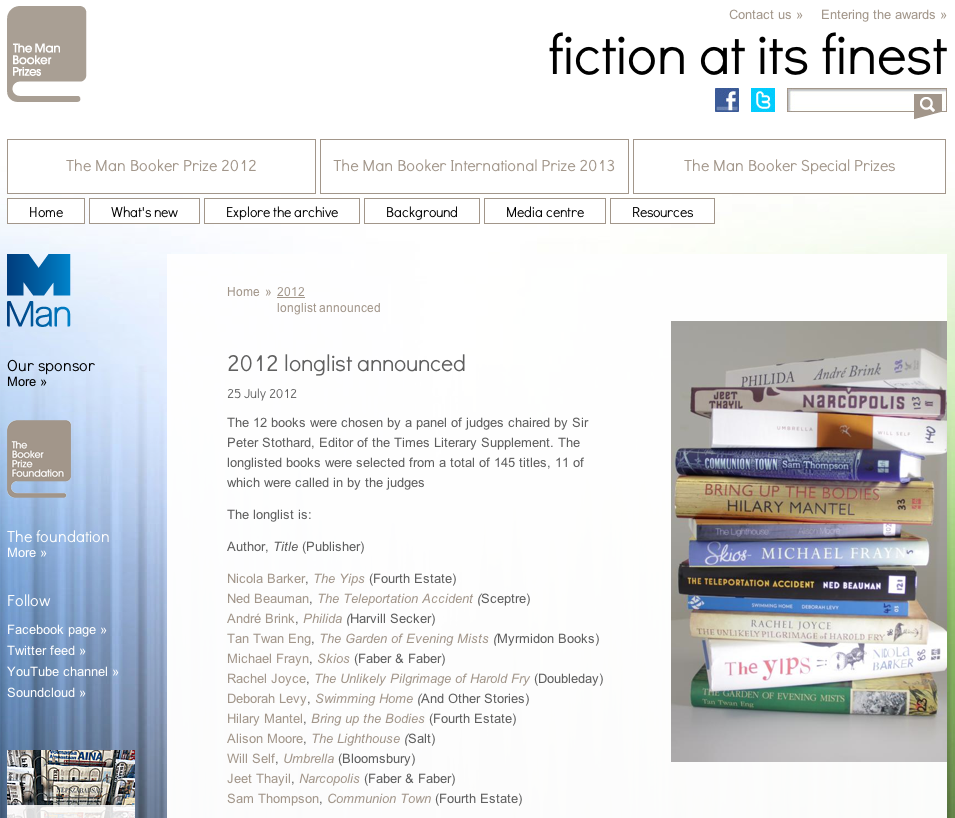 Na passada quarta-feira foi anunciada a longlist para o The Man booker Prize 2012.