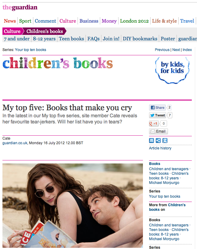 Portanto aqui ficam alguns títulos sugerido pelo "The Guardian"... para quem não se importa de perder umas lágrimas em troca de uma boa história.