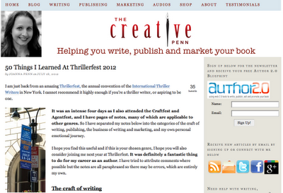 Aqui ficam as melhores 50 dicas do "Thrillerfest 2012" em Nova York, gentilmente partilhadas pela Joanna Penn do Blog "The Creative Penn"