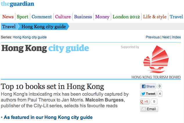 ...e do The Guardian com histórias passadas em Hong Kong (bom especialmente para quem não faz planos de lá ir… como eu)