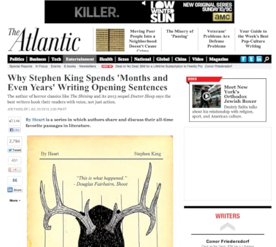 Stephen King, o mestre do Terror, fala sobre as suas 'frases de abertura' preferidas , de entre os seus livros e não só.