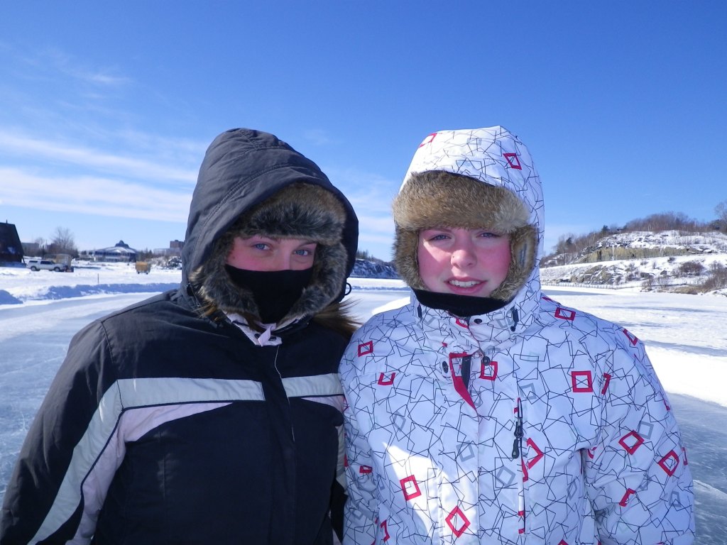cold noses, warm hearts So you would think that we'd be the only crazy family out there - but no. This is northern Ontario! There were many people out - playing hockey or just getting blown around. The skate up the lake was challenging, but the ride coming back down with the wind at your back was FUN!