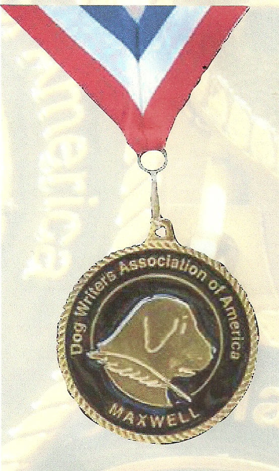 A fellow Dogs in Canada Magazine writer accepted the award on my behalf at the Annual Awards Banquet in New York at the Affina Manhattan hotel.