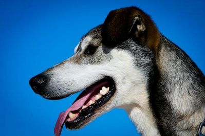 Cannington Sled Dog Races mascot poses with DOGSLED DREAMS