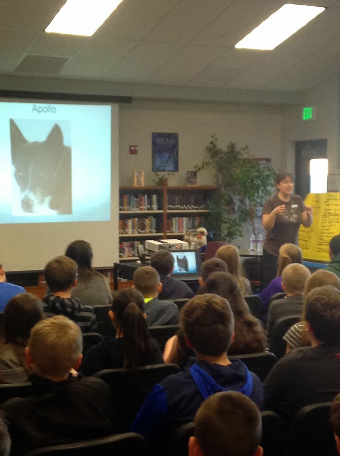 While I was there, Michelle Lane, the event coordinator, organized some middle school and elementary school visits for me which included dogsled races down the hallways of course. And lots of laughs.