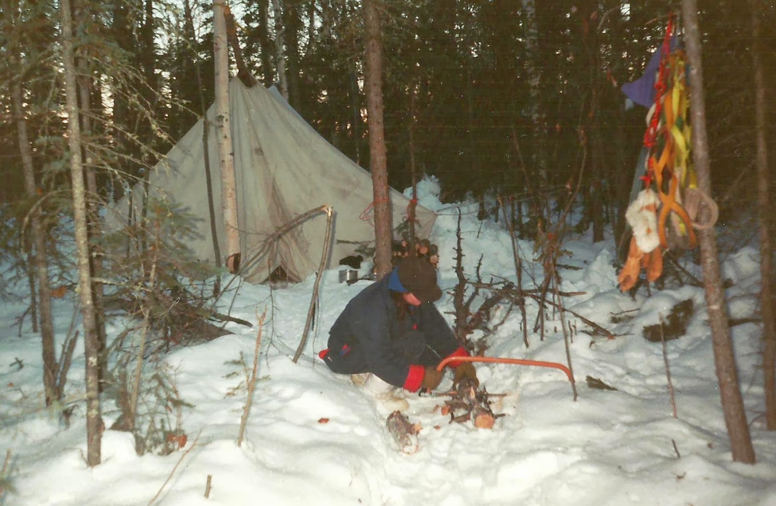 This is me winter camping with sled dogs in Alaska near Nenana - the setting of ICE DOGS. Notice the dog harnesses hanging in the tree