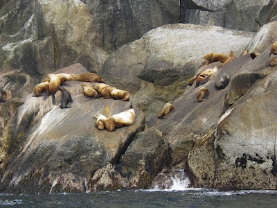 note: I missed getting a really cool shot of a humpback whale breaching as well as a sea otter eating an octopus. The octopus was larger than the sea otter! The otter floated on its back while tearing at a rubbery tentacle. It was so cool to watch it smacking its lips while peering over to make sure we weren't trying to steal the prize.