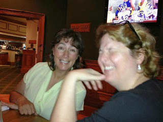New friend, Sylvia and I hard at work...