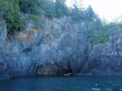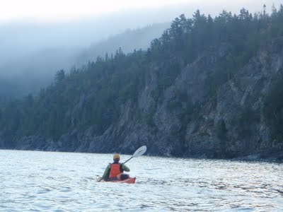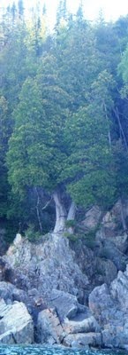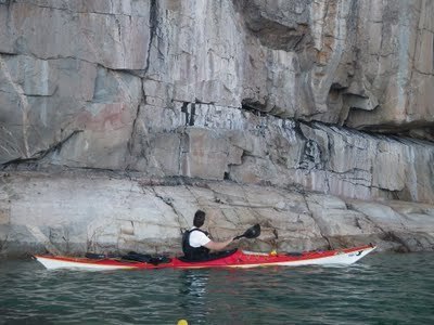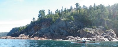 Gitche Gumee slept for most of our trip allowing us to get up close to the magnificient towering cliffs and spectacular pictographs. Here's a few shots, but of course, the photos don't do it justice. Most days we planned the headlands to avoid the afternoon winds, so the sun wasn't right for good pictures. I wish everyone could experience actually being there and witness the power of nature.
