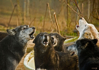 In the evenings, the pack sings. They sometimes wake us in the middle of the night. They obviously have some pups who can't sing yet, but try to make up for it by being the loudest. Sled dog pups do this too. It's hilarious to listen to.