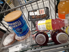 The items in this cart that are on my absent shopping list are the Maxwell House coffee and the bottles of Vitamin Water. The fried chicken, bacon, and donuts are not on my list. No wonder I look so unfocused. This author is definitely a List Person. What about you?😊