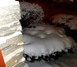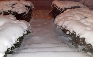 I'm trying to remember if this snowy night view is from the 2nd or 3rd recent snowstorm. The storms run together in my head. I'm clear on the fact that I choose to shovel my old stone front steps because some of them can easily be knocked loose if hit the wrong way with a shovel. I know these steps like no one else does, so I shovel them gently. The rest of the snow can be handled by my husband or kind neighbor.I wonder if all this recent precipitation, (there's more to come in the next few days), is to clear the air. There are lots of bad things hanging out in the air these days: viruses, hatred, lies, suspicion, death, violence, and so on...We're under lots of pressure, but it's comforting to remember that God is in charge. Be gentle with yourself and others. God's got it under control. Trust Him.