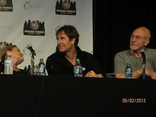 After Shatner's line, with an aching body I marched over to Patrick Stewart's line...which had been capped at 3:30 because all five "captains" had to host their 4PM discussion panel. So again, it was time to wander, this time to Dunkin Donuts to refuel. My fiancee and I did not even try to attend the "Five Captains" panel. Frankly, we were so tired by that time, having been on our feet since 9:45AM, we didn't care. Besides, we'd seen all of these fine actors before over the many years we've been attending cons. The thrill of seeing all of them together on stage simply did not exist for us.