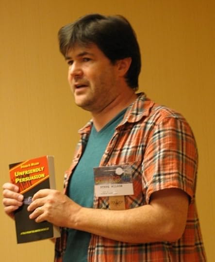I was able to catch up on some reading and rest until about 9PM when I joined friend and publisher, Steven H. Wilson, and Nebula Award winner Catherine Asaro for our shared 50 minute readings. Proving that chivalry is not entirely dead, we allowed the lady to read first from her SF novel, Carnelians. I then followed with a few scenes from my paranormal mystery, Testing the Prisoner, and Steven finished with a reading from his latest SF novel, Unfriendly Persuasion.