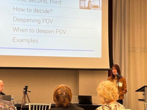 Saturday was the final day of the Write Stuff conference. In the morning, I attended two brilliant presentations by Katherine Ramsland on Creating Mental Maps and Observation for Writers. In between, Tiffany Yates Martin discussed ways to avoid that Middle of the Book Sag after which, she delivered an inspiring keynote speech over lunch.