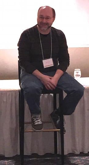 As is our tradition, Friday evening concluded with our reception. After disseminating the complimentary drink tickets to our various faculty members, I hung out with presenters and writer pals Steve Wilson, Aaron Rosenberg, and Michael Jan Friedman. We were joined by Greater Lehigh Valley Writers Group President, Peggy Adamcyk and our programming chair, Donna Brennan (who, in all honesty, was far more responsible for the success of this conference than I). Peggy is a fan of Michael Jan Friedman's and it gave me great satisfaction to introduce them.