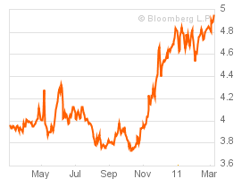 [...] The yield on Greek 10-year government bonds rose to 12.12% Friday, moving back above the 12% level for the first time since January, Jenkins noted, while the two-year spread had hit 15.22%.