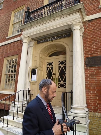 After a short break, we met again at Federal Hall where Alexander Hamilton, as portrayed by William G. Chrystal, author of Hamilton by the Slice: Falling in Love with Our Most Influential Founding Father, greeted us, said a few words, and posed for photographs with some of his fans: