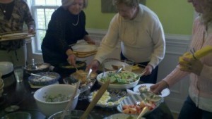 It's been way too long since I've posted here! But boy, have things been happening! I've met so many incredibly nice readers since I talked to you last. In fact, I was a speaker at the Antiquity Book Club in Cornelius, North Carolina. My mother-in-law, Dorothy, and my sister-in-law, Kathy, are members and invited me up to meet the more-than-a-dozen ladies who've become their go-to gals for all things bookish! Everyone was so welcoming and put together such an incredible meal to celebrate When Harry Met Molly's launch! Not only were book club members present but my husband's Aunt Patti and Grand-Aunt Bobbie Lee, the hippest aunts in North Carolina, without a doubt–and Dawn and Kathryn (pictured above), Kathy's BFF's and the most awesome girls around!! I'm claiming them as my dear friends, too–they both drove for hours to get there.