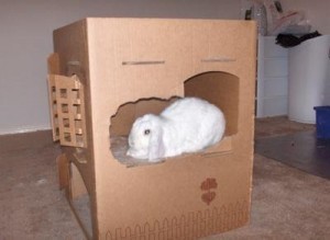 Buttercup is seven years old now and rules her part of the house. She has her very own bedroom with a babygate she scratches on when she wants to come out and play. Our bunny also has a cardboard cottage (check out her window renovations), a cardboard maze, and various tunnels to hide in. So yes, I'm crazy – crazy in love with our little furbaby.