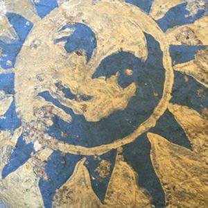 I’ve had this North Carolina river rock (that I bought at a garden center in Hickory NC, where I used to live…you really shouldn’t take rocks from creek or river beds!) for over twenty years. I painted it and stenciled it with a sun image and sprayed it with Modpodge. It’s been sitting on my front porch, along with a stenciled rock with the moon on it, all this time, and I never tire of seeing them. They remind me of days gone by, precious days when my kids were small.