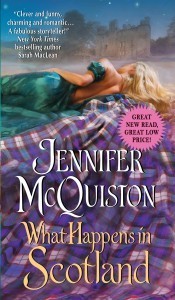 Leave a comment to be entered to win a copy of WHAT HAPPENS IN SCOTLAND by Jennifer McQuiston and a signed copy of DUKES TO THE LEFT OF ME, PRINCES TO THE RIGHT. Giveaway open to US/CA. Ends 4/19.