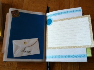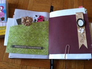 You can put your own photos and writing on the pages I’ve already prepared or use some of the many blank pages I left in the book for your own creative expression. One of the pages has a pocket that’s full of embellishments to help you create your own pages, if that’s what you choose.