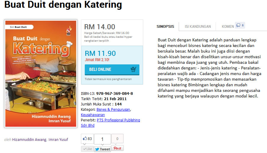 Dua info terkini yang menarik untuk di-highlight berkaitan buku ini. Buat Duit dengan Katering adalah panduan lengkap bagi menceburi bisnes katering secara kecilan dan berskala besar. Malah buku ini juga diisi dengan kisah-kisah benar dan diselitkan unsur-unsur motivasi bagi membina daya juang yang utuh, insya-Allah.